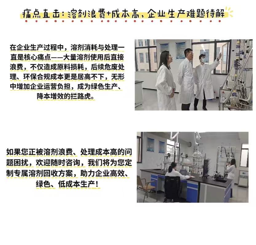 企业生产溶剂浪费大、处理成本高?我们提供专业溶剂回收服务,从实验室精准检测到工业化蒸馏提纯,回收率高、安全稳定、合规环保,真正帮企业降本增效、绿色生产。有需求欢迎咨询,定制专属方案!