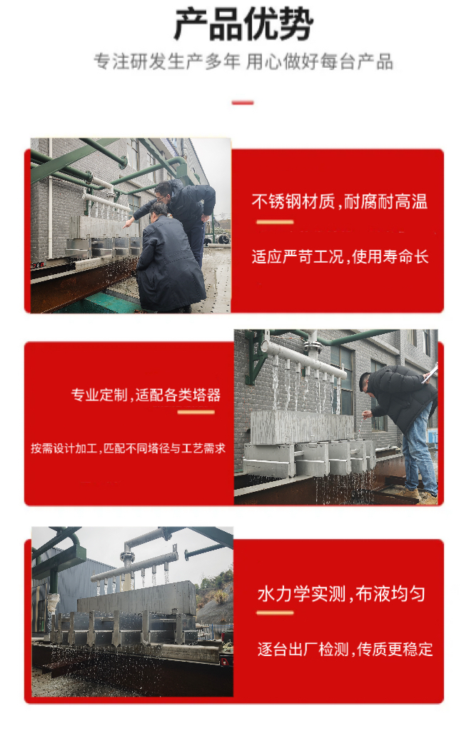 适用于化工、制药、石油、环保等行业的精馏塔、吸收塔、萃取塔等各类塔器,用于液体均匀分布,提升塔器传质效率,支持水力学实测出厂,专业定制适配各类工况