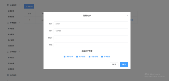 10.用户管理:添加用户,给用户添加操作权限;编辑账户信息,删除账号操作