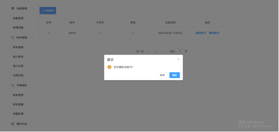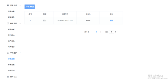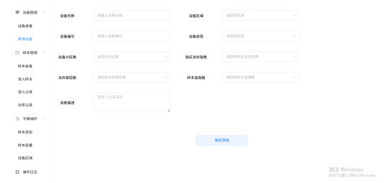 7.字典维护:用户可自定义样本类型,容量,设备类型,区域等信息;在添加设备,添加样本时对应的字段可以根据维护的字段进行选择