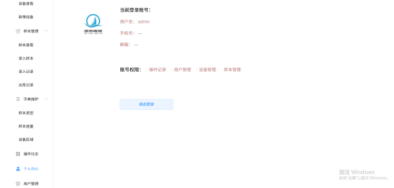 9.个人中心:显示用户登录账号的信息;显示账户权限信息