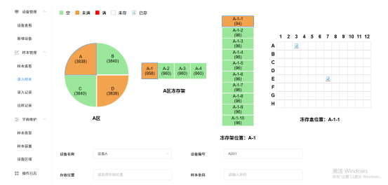 5.样本录入:选择相应设备,会弹出该设备当前的样本状态;选择位置,并输入样本信息,可添加样本到该设备中