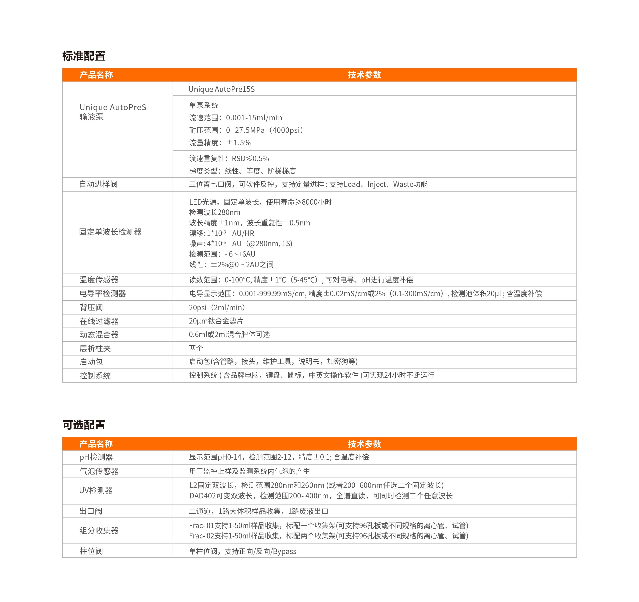 Unique AutoPreS 是一款紧凑型单泵蛋白层析系统,可用于快速纯化微克到克级的蛋白、核酸、疫苗及多糖等目标产物的快速纯化。