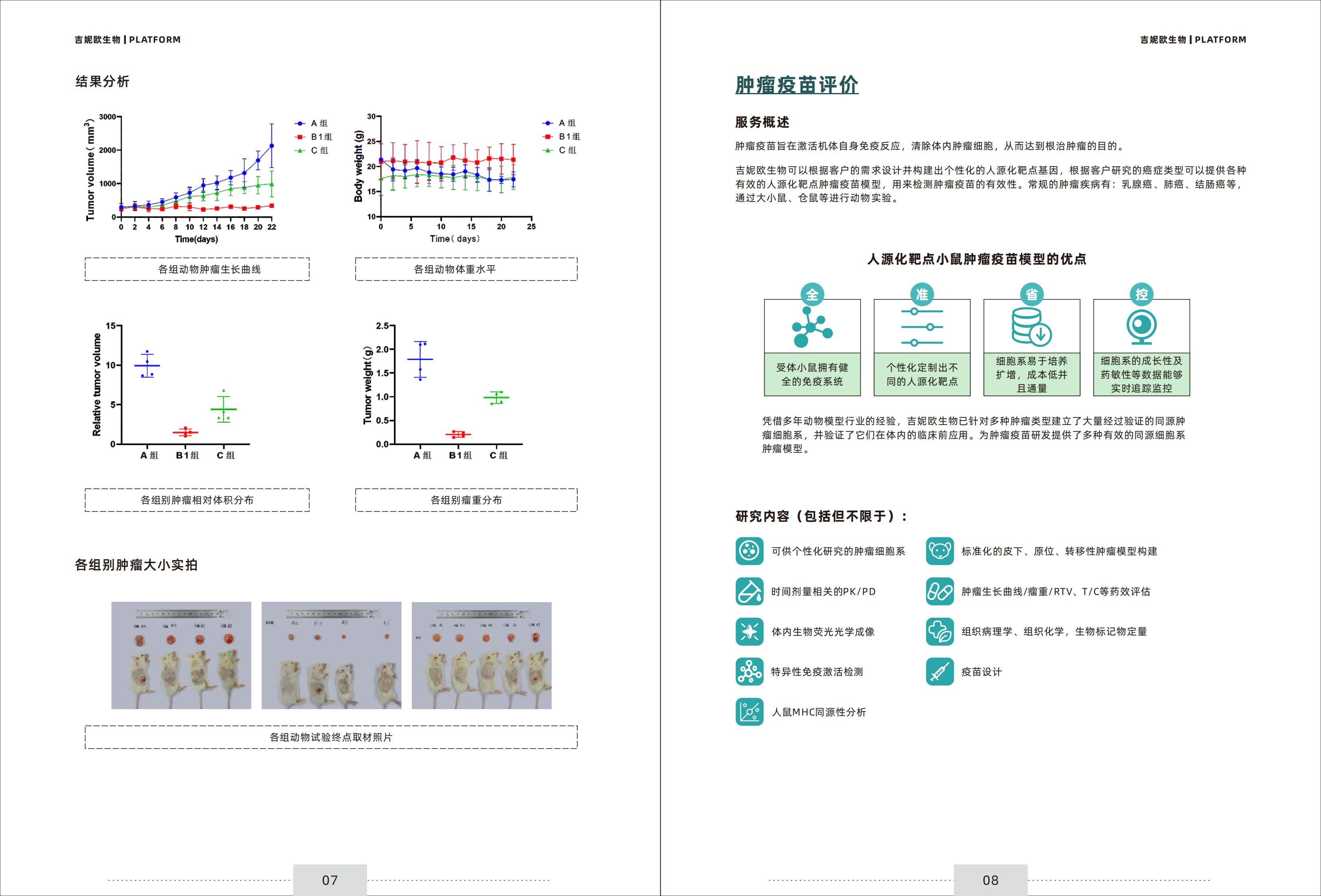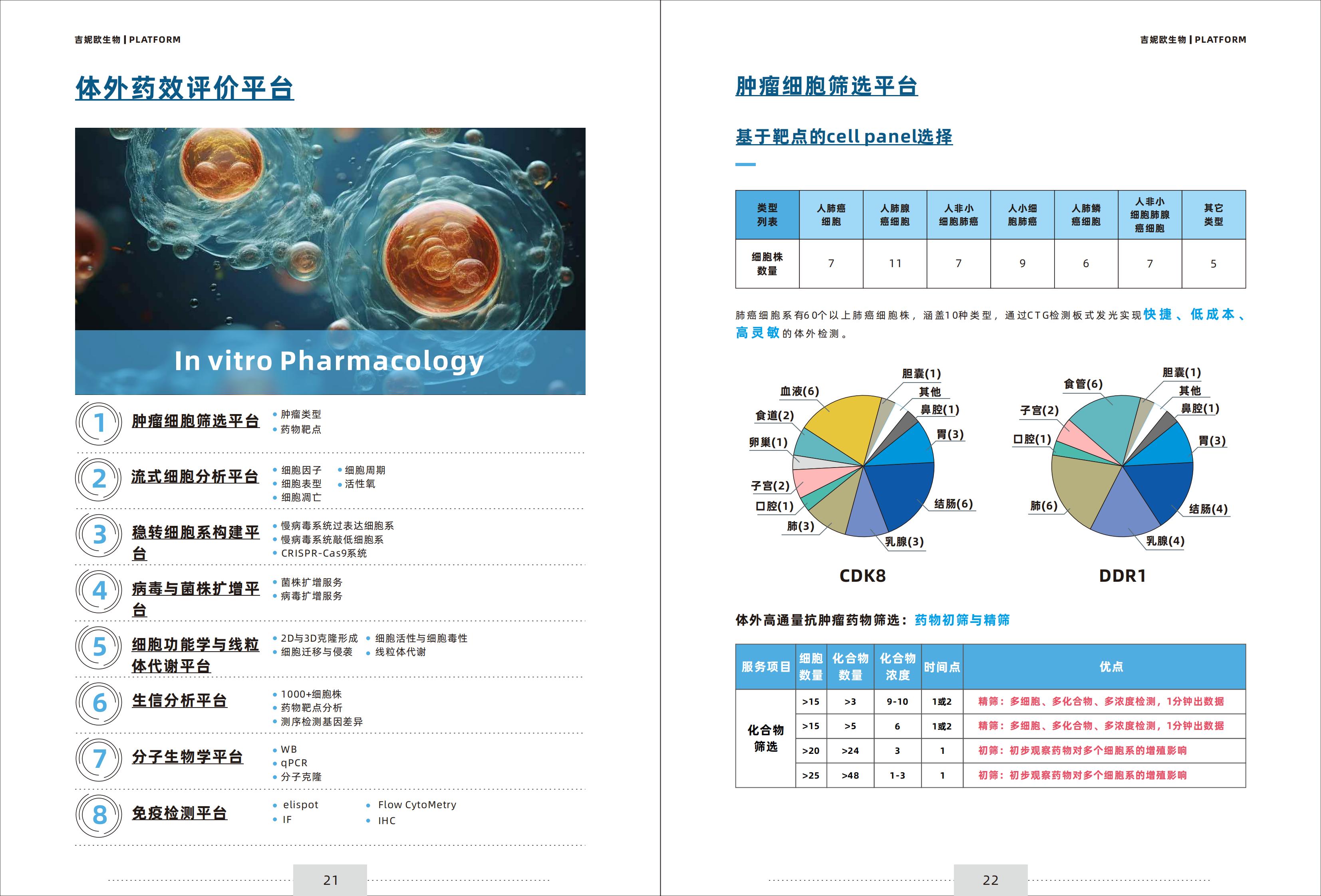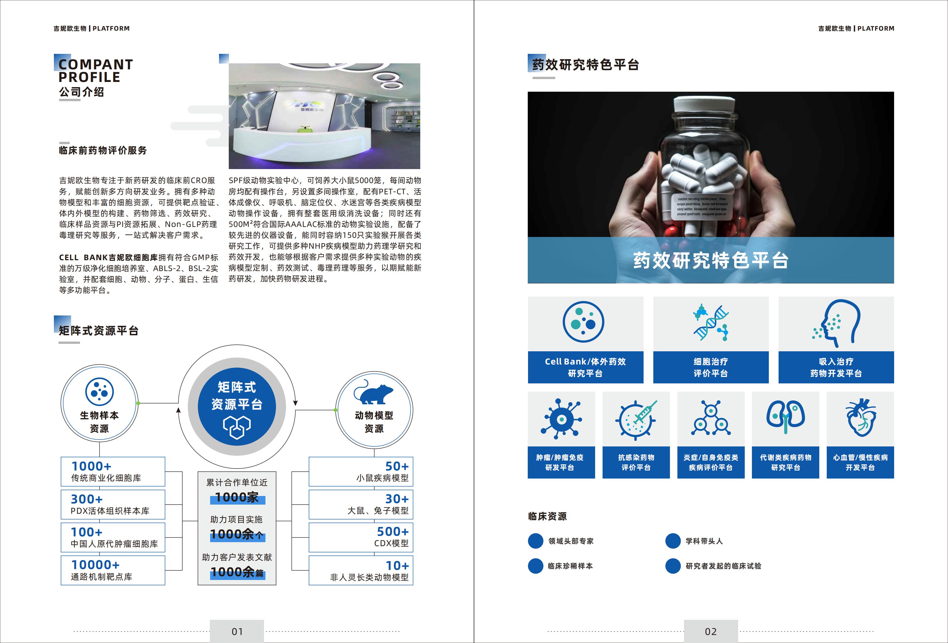 广州吉妮欧生物科技有限公司 吉妮欧生物拥有2000余平的研发服务平台,包含GMP标准的1000+细胞库资源和近万种通路机制的靶点资源,同时具备ABSL-2 、BSL-2备案的生物安全二级实验室(P2), 专业高效的SPF级药效研究平台,可实施大、小动物(鼠、猴等)研究,同时可提供70+不同临床表型和适应症需求的动物疾病模型,以及300+CDX/PDX模型。 围绕着新靶点、新机制的创新药研发需求,吉妮欧始终专注于行业缺乏好用疾病模型的痛点,为用户提供定制化的,符合临床表型和发病机制的疾病模型与药效整体解决方案,助力药企及科研单位提供一站式服务。