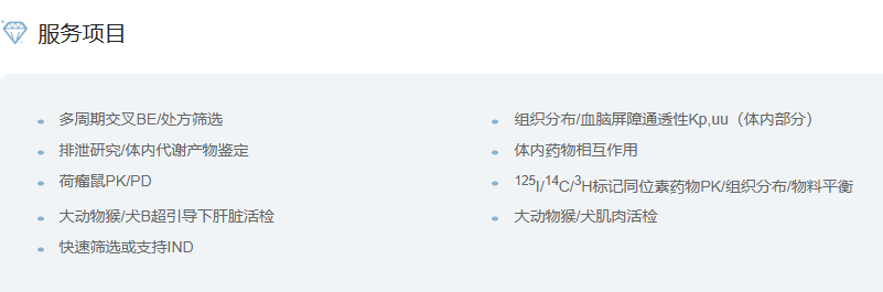上海美迪西在药代动力学方面有丰富广泛的经验。我们的药代部分为客户提供从所有小分子到大分子(蛋白质和抗体)的高质量药代动力学服务,包括体外ADME和体内药代以及生物分析。涉及的动物种类有非人灵长类、狗、小鼠、大鼠、兔、豚鼠等。其中非灵长类平台及利用同位素蛋白质/抗体实验平台被上海市政认定为重要实验室平台。