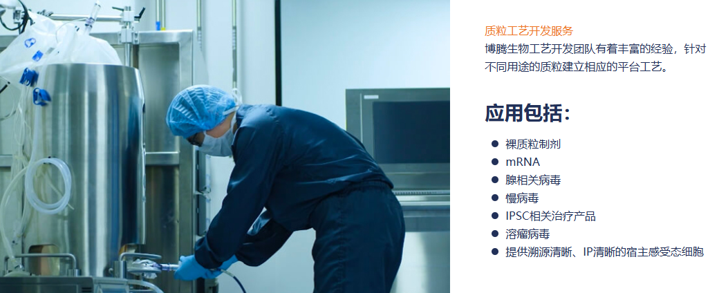 苏州博腾生物制药有限公司成立于2018 年12月,立足于苏州工业园区,以上市公司-重庆博腾制药科技股份有限公司(股票代码:300363)为依托,搭建了质粒、病毒载体、细胞治疗、基因治疗、核酸疗法等CRO和CDMO平台,提供从科研包装,建库,工艺开发,分析方法开发,cGMP生产到制剂灌装的端到端服务,贯穿药物的不同研发阶段,帮助客户加快药物研发与上市进程。