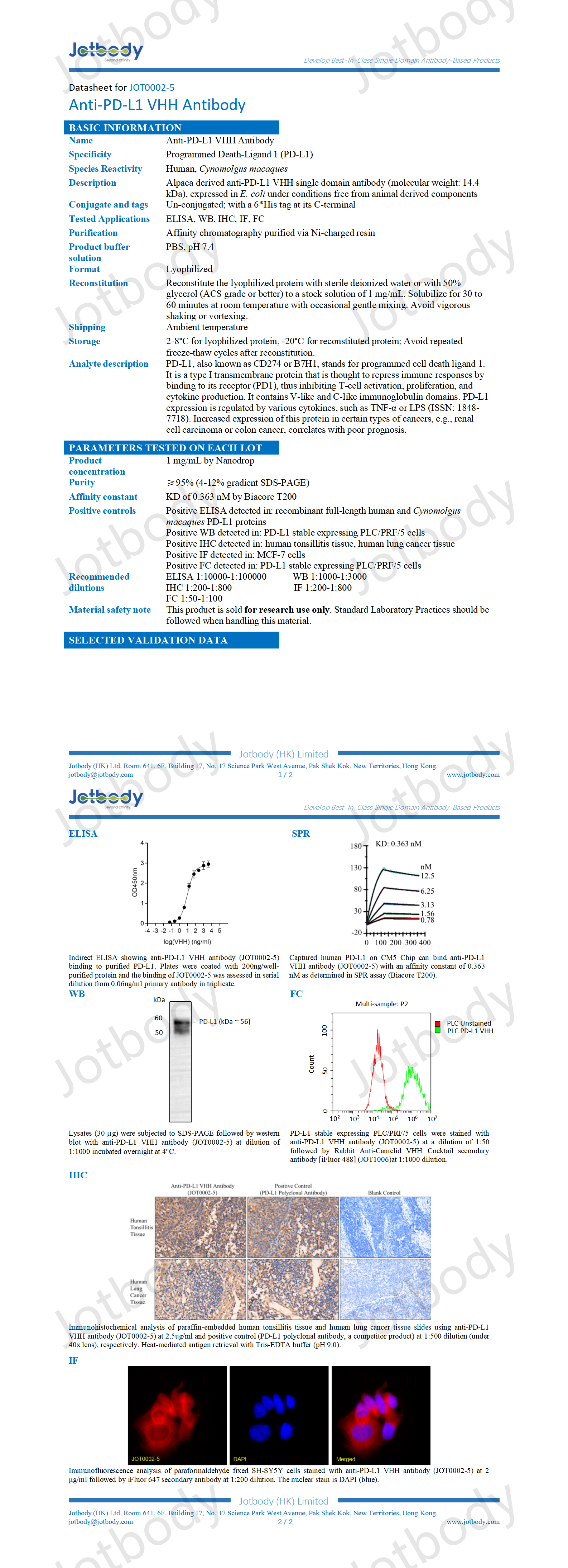 Jotbody(捷博生物)致力于纳米抗体和外泌体的研发和应用转化。公司成立于2020年,拥有深耕生物制药和生命科学工具领域的国际一流团队,建有先进的纳米抗体发现和工程化技术平台,同时依托新加坡国立大学科研力量,提供外泌体研究服务和优质工具产品。公司入选《福布斯亚洲》“2023年亚洲最值得关注100家企业”榜单、深圳市科技型中小企业、光明区合成生物企业、创新型中小企业,已为来自20余个国家和地区的客户提供了纳米抗体和外泌体定制化开发服务和高性能研究用试剂。