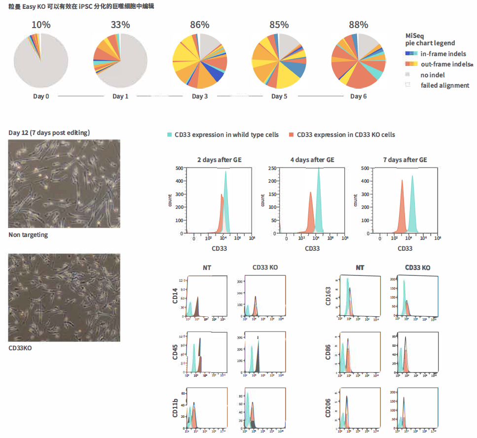 粒曼CRISPR可以有效在iPSC分化的巨噬细胞中编辑iPSC分化的巨噬细胞基因敲除并不影响细胞表型。