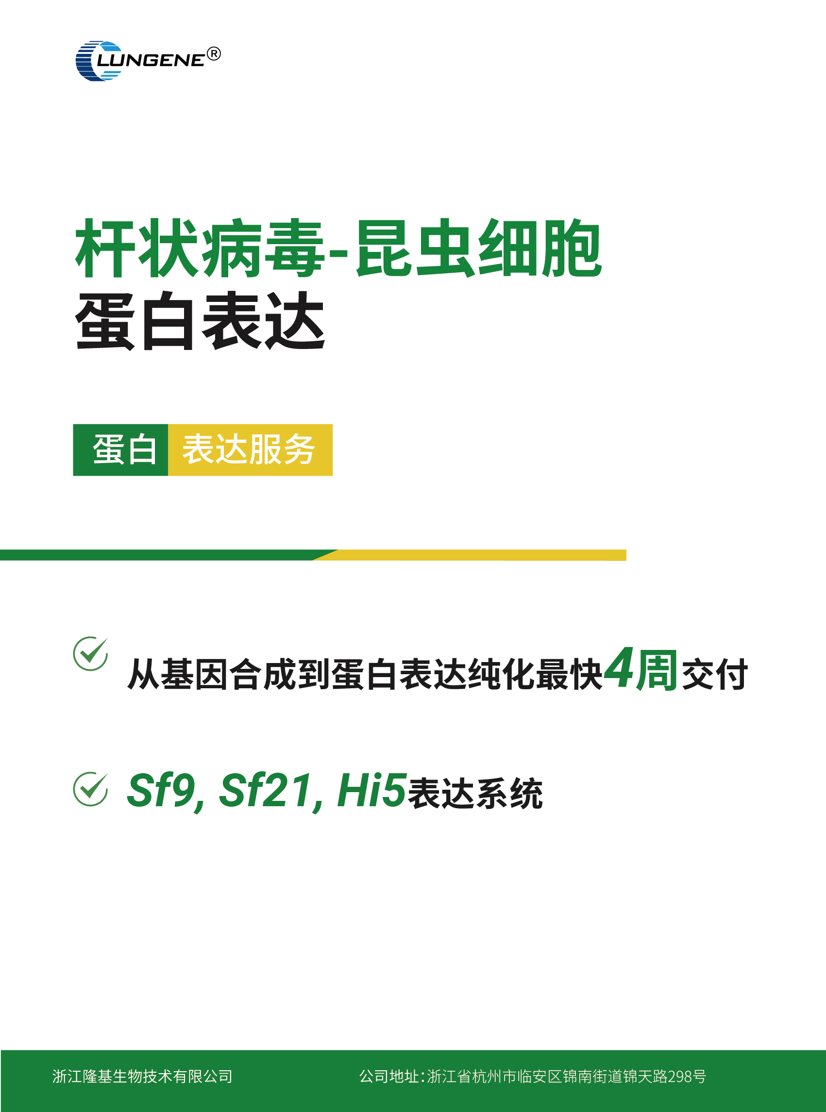 浙江隆基生物(ClongeneBio)是一家为全球生物医药领域提供专业的CRO/CDMO服务的技术型企业。隆基生物拥有10000+m² GMP生产车间及研发中心,凭借积累的丰富技术经验和先进的技术平台,可为客户提供抗体发现、抗体表达、蛋白测序、蛋白表达、基因编辑和稳定细胞株构建服务,覆盖了从早期研发、基因合成、细胞株开发、生产工艺优化生物检测分析及分子生物学服务到大规模商业化生产的各环节。隆基生物拥有多项先进的技术平台和经验丰富的生物领域技术人才,为重组蛋白、抗体以及细胞等的开发分析提供强有力的保障。 隆基生物致力于为加快全球生物技术及生物制药领域可持续发展做出更大的贡献,实现从概念到商业化生产的全过程,加速全球生物药研发进程,降低研发成本,为行业发展和全人类健康事业做出一份贡献。