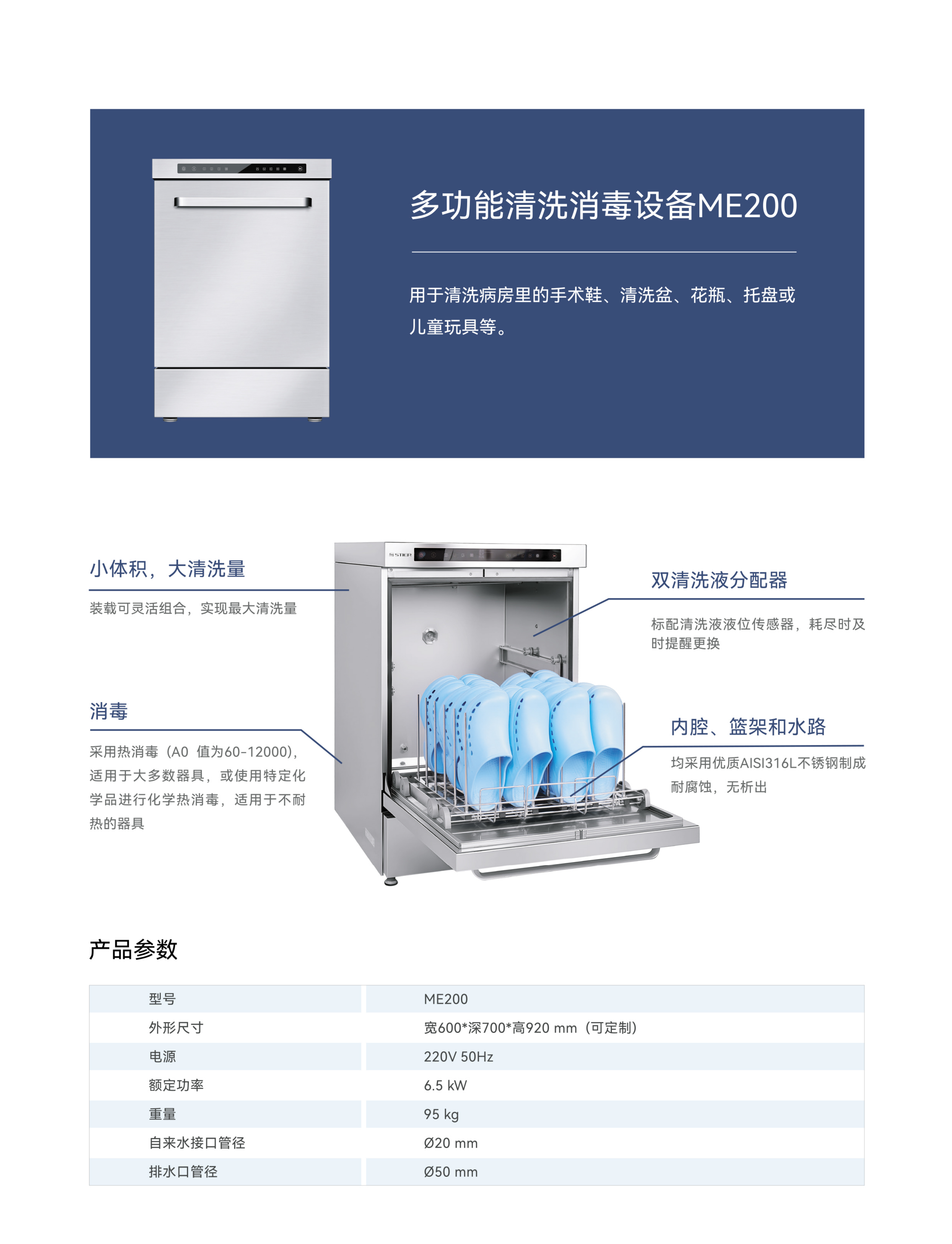 拖鞋清洗机是医疗、生物、制药行业及第三方消洗供应中心洁净专用工作鞋的理想选择,洗涤效率高,省水,烘干效率高,有效节约能耗。