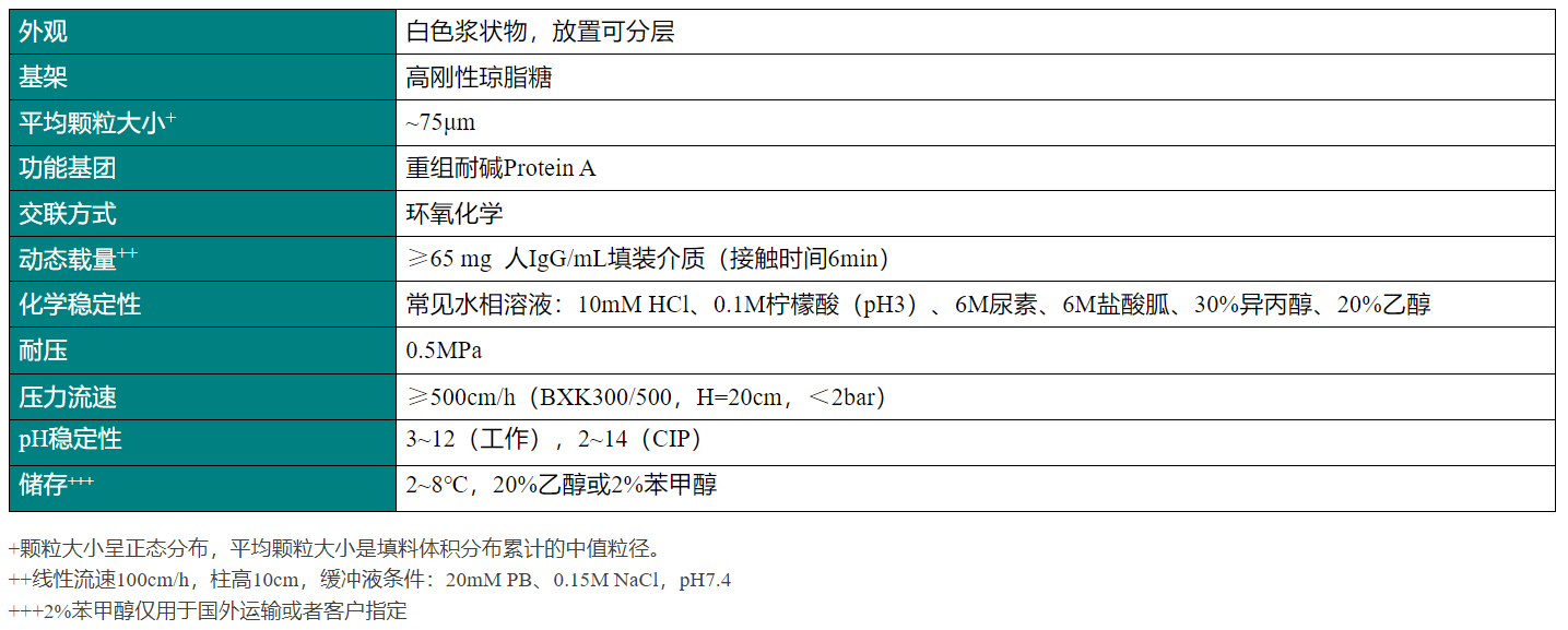蛋白配基的高耐碱性,可在清洗过程耐受0.5~1.0 M NaOH 的CIP。