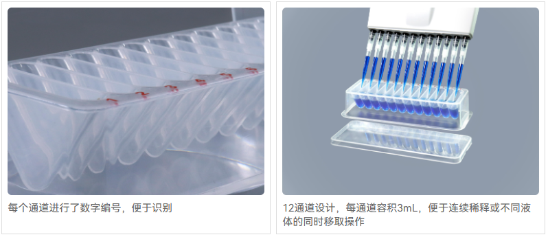 * 12通道设计,每通道容积3mL,便于连续稀释或不同液体的同时移取操作