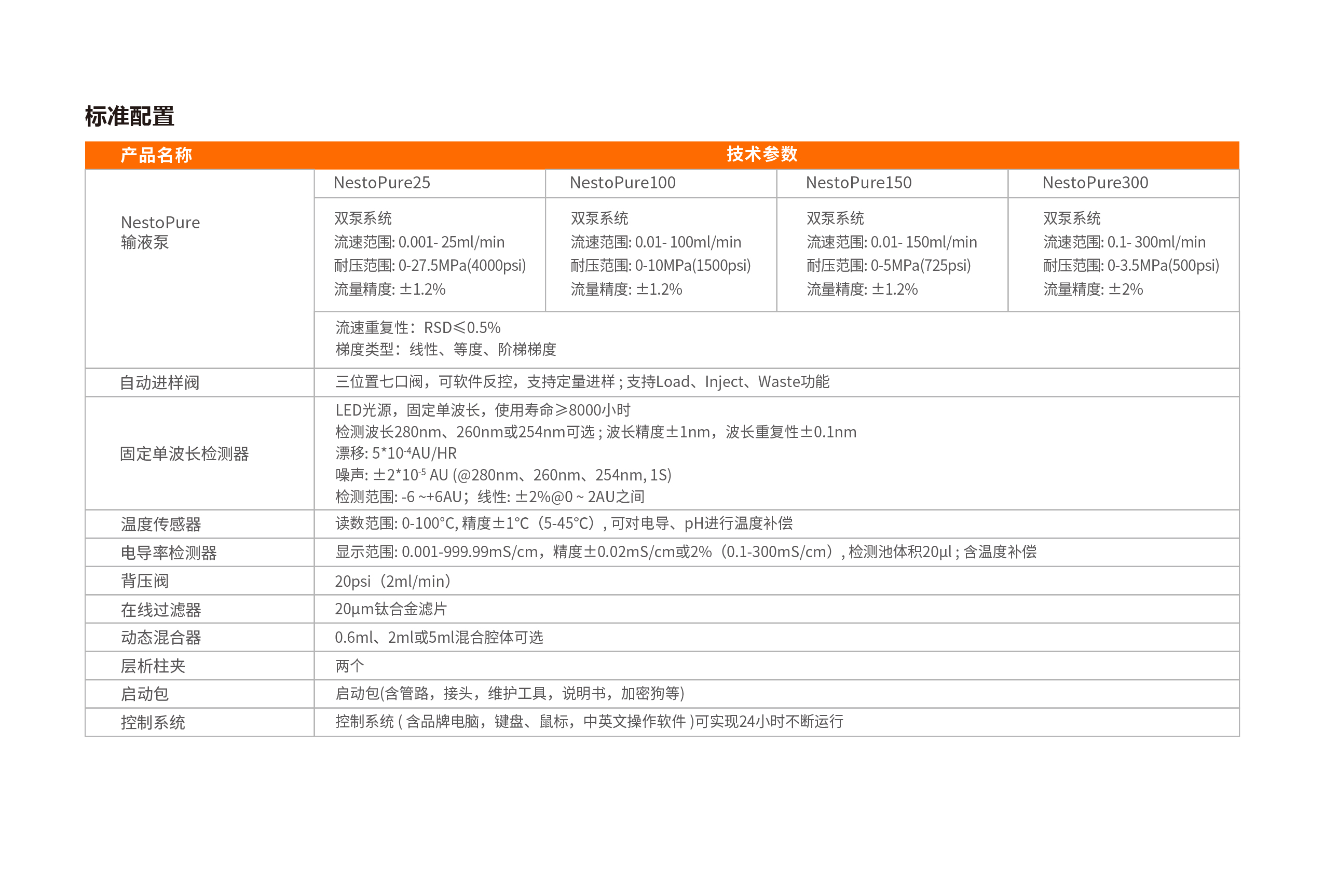 NestoPure新一代层析系统集成了上样泵和pH阀,设计更为紧凑,显著降低了流路死体积。系统可选配钛合金泵头,具有更出色的耐腐蚀性与生物相容性。此外,电导检测器配备了保温外壳,有效减少了外界温度波动对电导测量值的干扰。搭配全新的NestoPure SC进样收集一体机,能够实现多步层析的连续工艺。