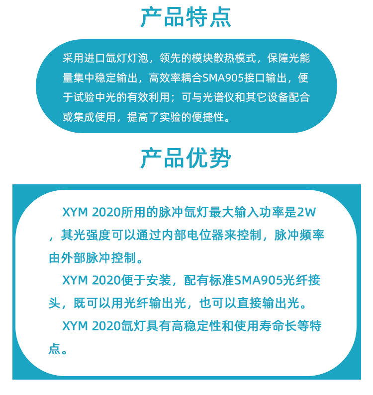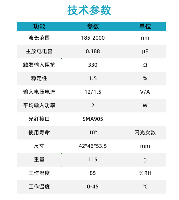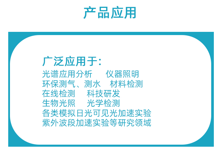4、产品应用 环保测药、仪器照明、光谱分析、材料检测、在线检测和科技研发等。
