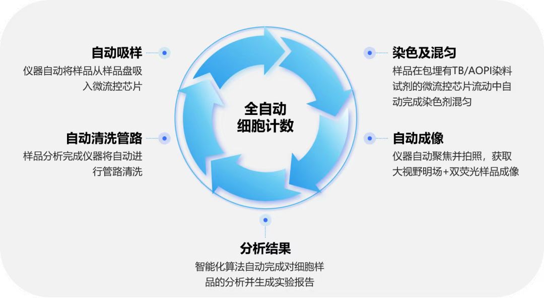 收藏CytScop®Pro智能细胞计数仪应用台盼蓝染色排除法及AOPI双荧光染色法判断细胞存活率,配备明场和荧光大视野显微光学系统与一次性微流控耗材,搭载高精准细胞识别算法,结合全自动、高通量操作系统,实现生物制药领域中细胞计数和活率的准确稳定、高效经济和标准流程化分析。