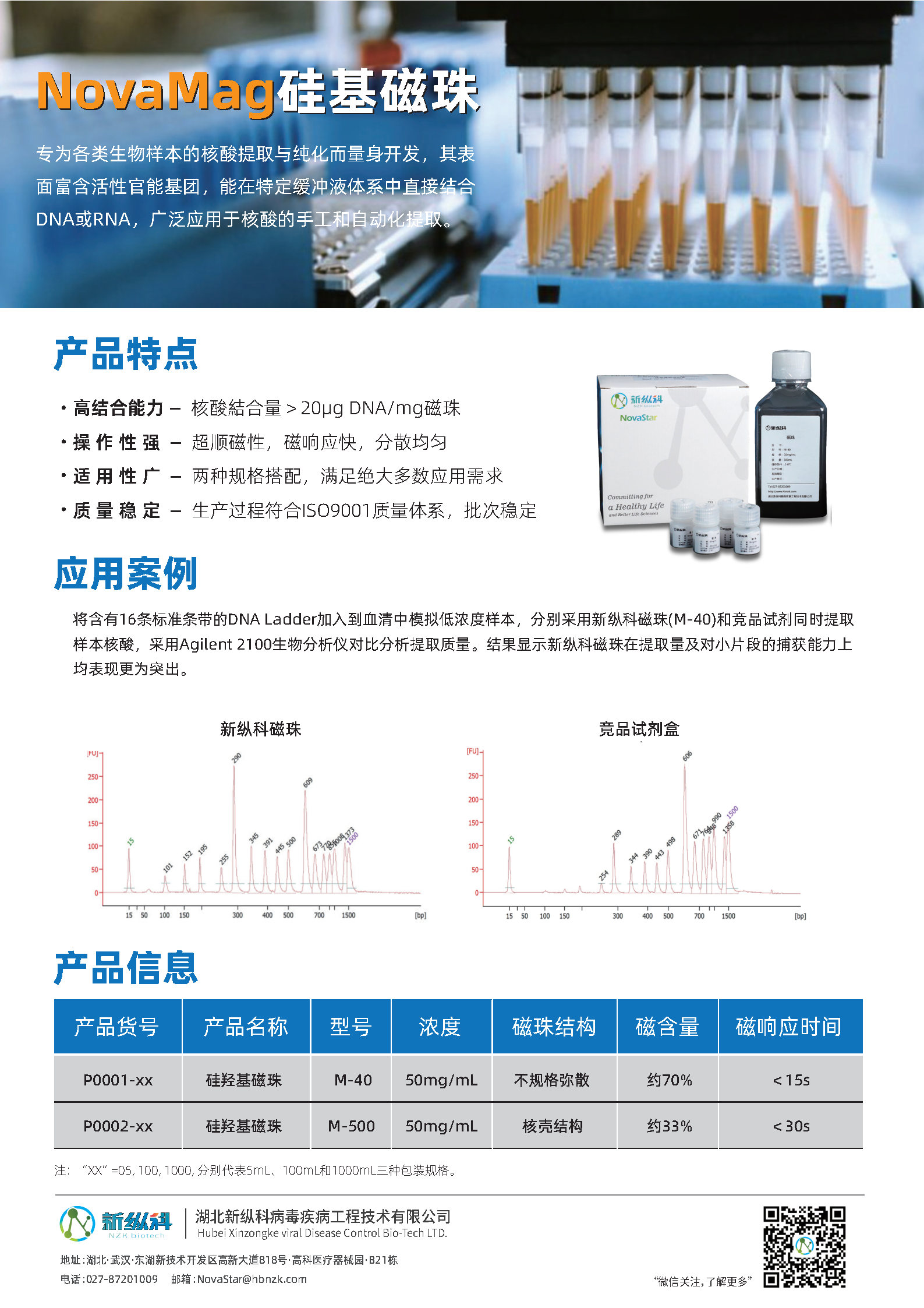 湖北新纵科成立于2010年,是一家专注于精准检测技术创新研究和应用推广的技术驱动型企业,致力于为生命科学、医疗健康提供综合解决方案。作为行业领先的液相芯片技术平台型企业,新纵科可为体外诊断企业提供精准高效的开放式仪器平台、荧光编码微球及试剂解决方案。目前公司在武汉、上海均设有研发和生产中心,已申报专利近三十项,是流式点阵仪行业标准的起草单位。未来,新纵科将继续秉持开放合作,共同推进创新成果的临床应用转化,为人类健康保驾护航。