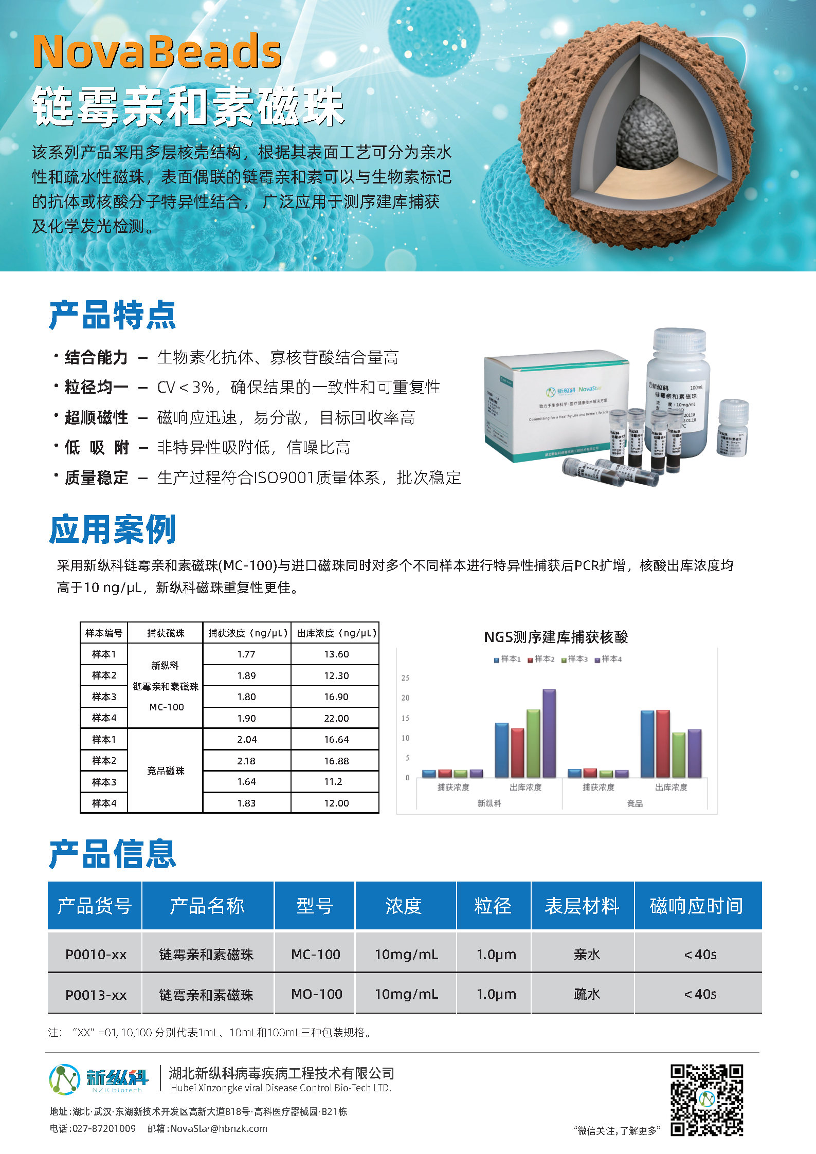 湖北新纵科成立于2010年,是一家专注于精准检测技术创新研究和应用推广的技术驱动型企业,致力于为生命科学、医疗健康提供综合解决方案。作为行业领先的液相芯片技术平台型企业,新纵科可为体外诊断企业提供精准高效的开放式仪器平台、荧光编码微球及试剂解决方案。目前公司在武汉、上海均设有研发和生产中心,已申报专利近三十项,是流式点阵仪行业标准的起草单位。未来,新纵科将继续秉持开放合作,共同推进创新成果的临床应用转化,为人类健康保驾护航。