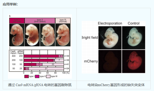 Genome Editor是一款为应用CRISPR/Cas9受精卵基因编辑技术而设计的高精度电压控制电转化仪。配备受精卵转化专用电极可以高通量高成活率机型受精卵的转化,无需专业操作技能,简单易学。同时,Genome Editor的应用还覆盖了各种高要求的活体基因电转化研究。