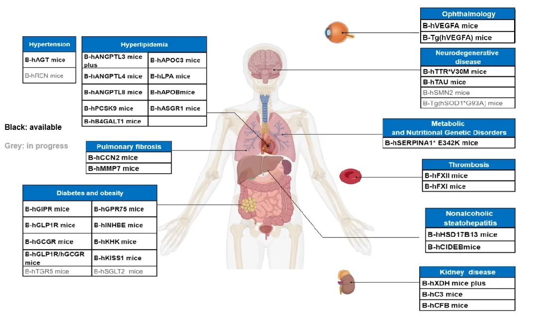 小核酸领域人源化小鼠产品列表
