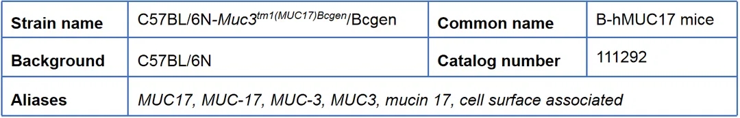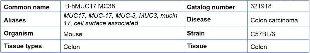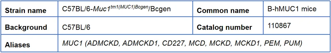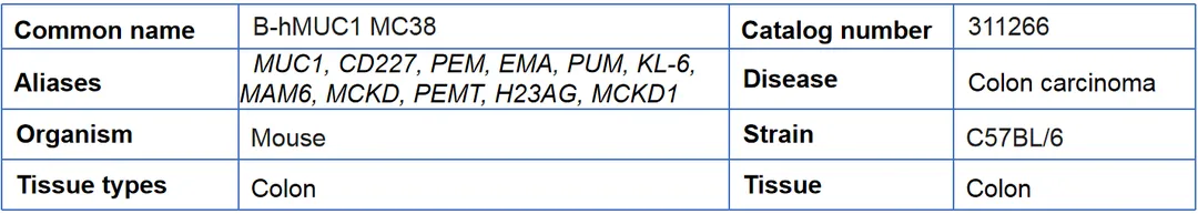 百奥动物自主研发B-hMUC1、B-hMUC17小鼠以及B-hMUC1 MC38、B-hMUC17 MC38细胞系,助力黏蛋白(MUC)相关肿瘤免疫治疗药物临床前研究。