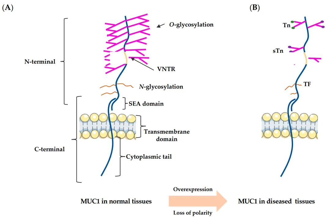 [4]Chen W, Zhang Z, Zhang S, Zhu P, Ko JK, Yung KK. MUC1: Structure, Function, and Clinic Application in Epithelial Cancers. Int J Mol Sci. 2021;22(12):6567. Published 2021 Jun 18. doi:10.3390/ijms22126567.