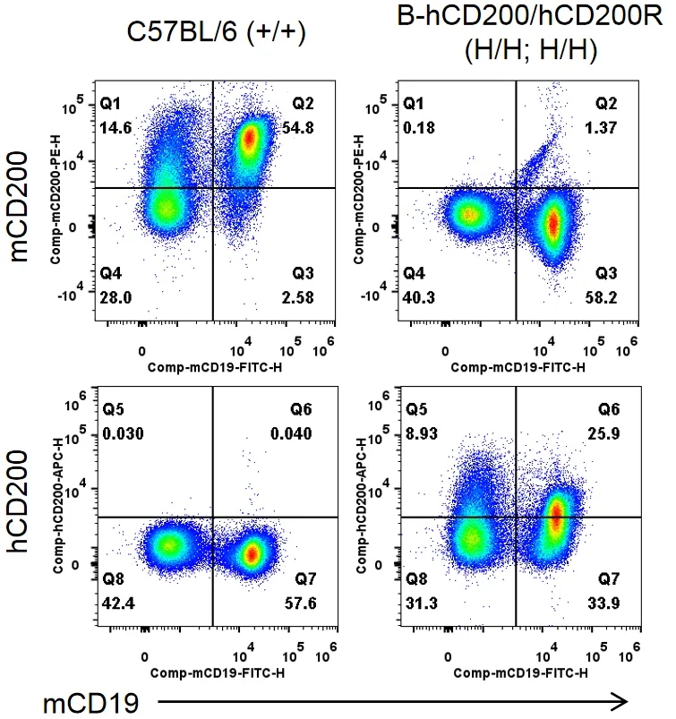 流式细胞术分析B-hCD200/hCD200R纯合小鼠种属特异性CD200表达