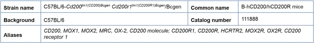 CD200/CD200R信号在自免疾病、炎症、肿瘤、神经系统疾病等多种疾病的免疫调节中起到重要作用,是潜在的免疫治疗靶点。百奥动物自主研发一系列CD200/ CD200R人源化小鼠及细胞系,助力相关免疫治疗药物研发。