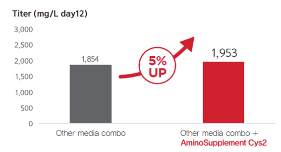 结果显示,CHO-S细胞培养过程增加4.5%浓度的氨基酸补充剂以后,效价提升了5%。