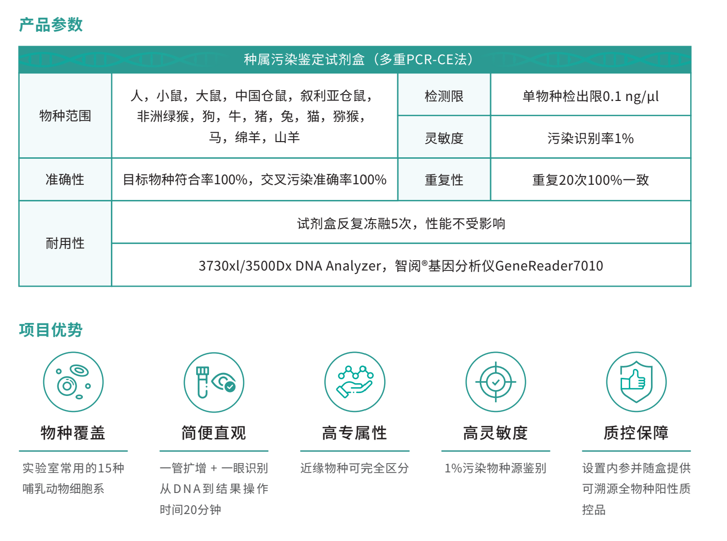不同类型细胞在制备、扩增及修饰等体外操作过程中,经常会发生细胞间交叉污染。有效判断细胞的种属来源,和确保细胞在制备过程中无不同种属间细胞交叉污染,是细胞质量控制中的重要环节之一。