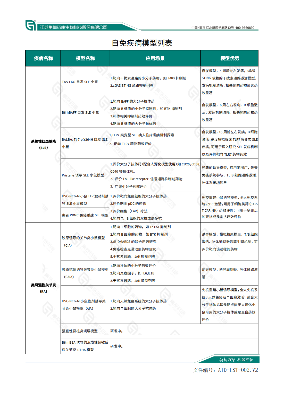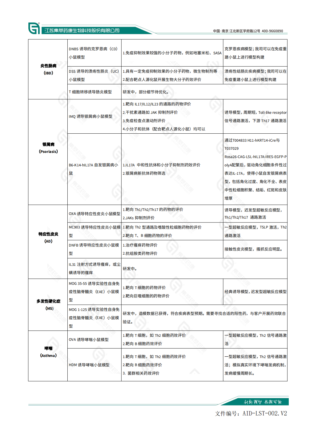 集萃药康自身免疫性疾病临床前服务平台依托于公司丰富的小鼠模型资源及成熟的药效评价技术,开发了自身免疫性疾病模型评价体系,致力于为客户提供自免药物临床前一站式服务。