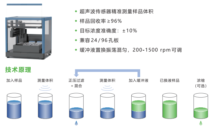 实验流程中,繁琐的手动换液、浓缩往往会耗费您巨量的时间,这些全部可以交给Magic。Magic台式自动换液系统可将样品置换到您需要的缓冲液中,还能将样品进一步浓缩,而这一切都将加快您的实验进程。