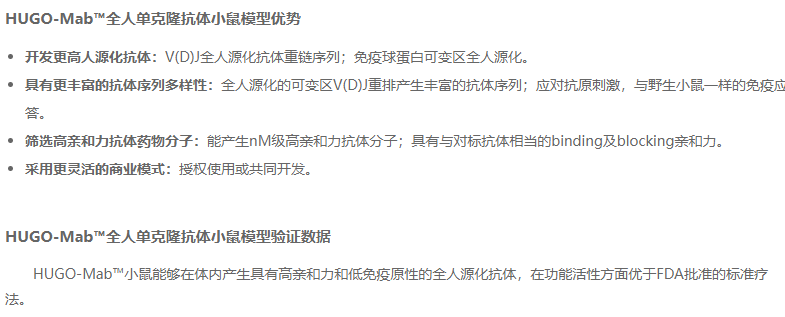 收藏赛业生物基于国内创新性全人抗体药物研发的需求,凭借扎实的技术创新实力,以及自主研发的TurboKnockout®技术,采取大片段原位替换策略,替换小鼠体内的VH、VK和VL基因为人源基因,构建了HUGO-Mab™全人单克隆抗体小鼠。该小鼠能够在体内产生具有高亲和力和低免疫原性的全人源化抗体,极大加快抗体发现和新药研发过程,这一点已经得到了多家跨国药企、生物制药公司、科研学术机构的验证。