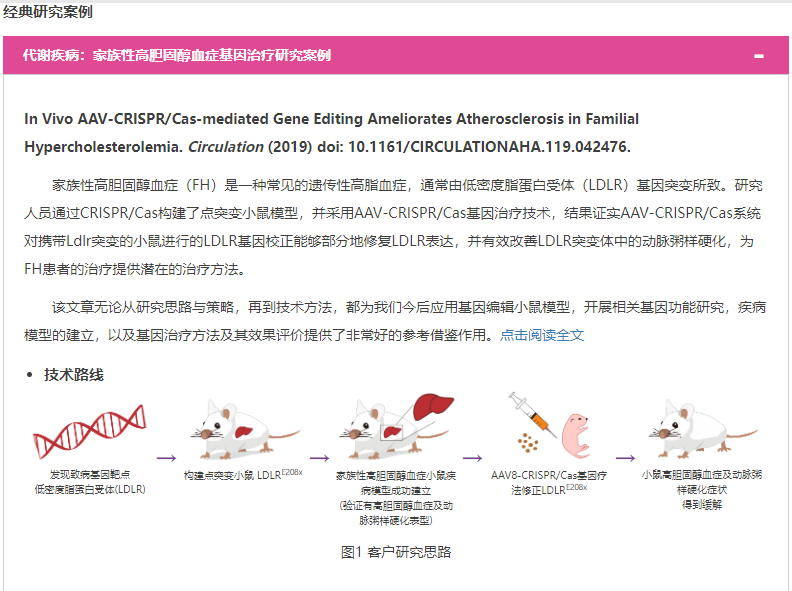 赛业生物不仅在模式动物领域有深厚的技术积累,更是在细胞生物学领域深耕十几年,可提供成熟的验证基因治疗疗法的基因编辑模式动物和病毒包装服务,产品和服务引用文献总数达到数千篇,其中不乏Nature、Cell、Science等顶级期刊。赛业生物以助力基因治疗的科学研究和临床转化为目标,深耕基因治疗研究领域,可提供从突变基因的致病风险评估到细胞和小鼠模型制作、表型分析,到基因治疗方案、AAV载体设计直至小鼠模型药效验证的全套服务。