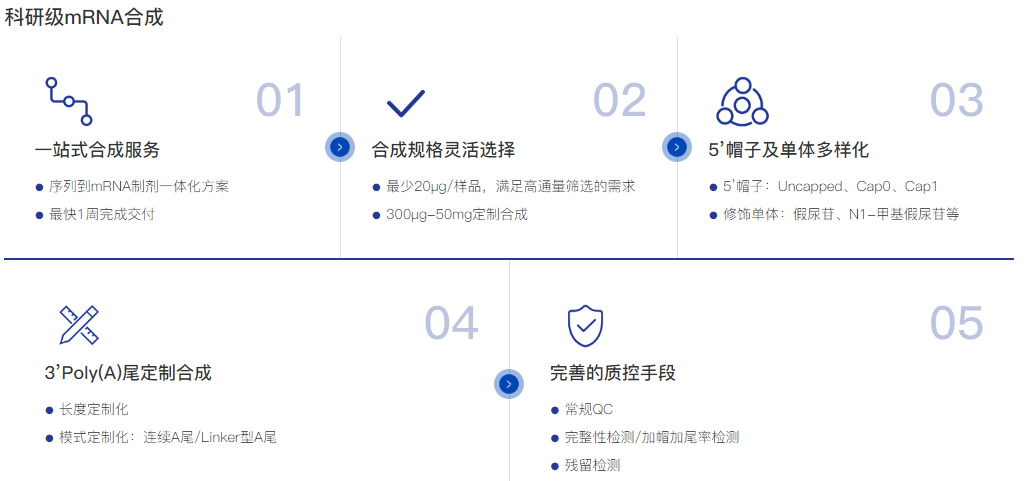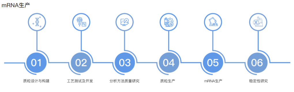 左旋星生物的mRNA生产平台提供全面且一体化的服务,专门为不同研发阶段的客户需求设计。我们的解决方案从序列设计优化、模板质粒构建,到体外转录mRNA和LNP包封,覆盖了mRNA生产的整个流程。每一环节均确保符合最高的质量标准。平台还包括从质粒到最终mRNA制剂的全面分析检测,保障产品在每个阶段的质量与安全,满足严格的行业标准。