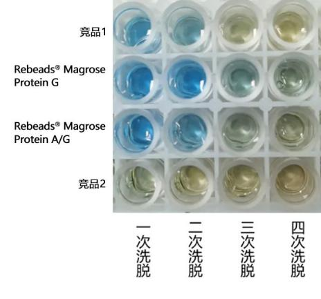 结论:此磁珠相较于竞品来说具有较好的结合能力和易洗脱特性,两次即可达到较好的洗脱效果。