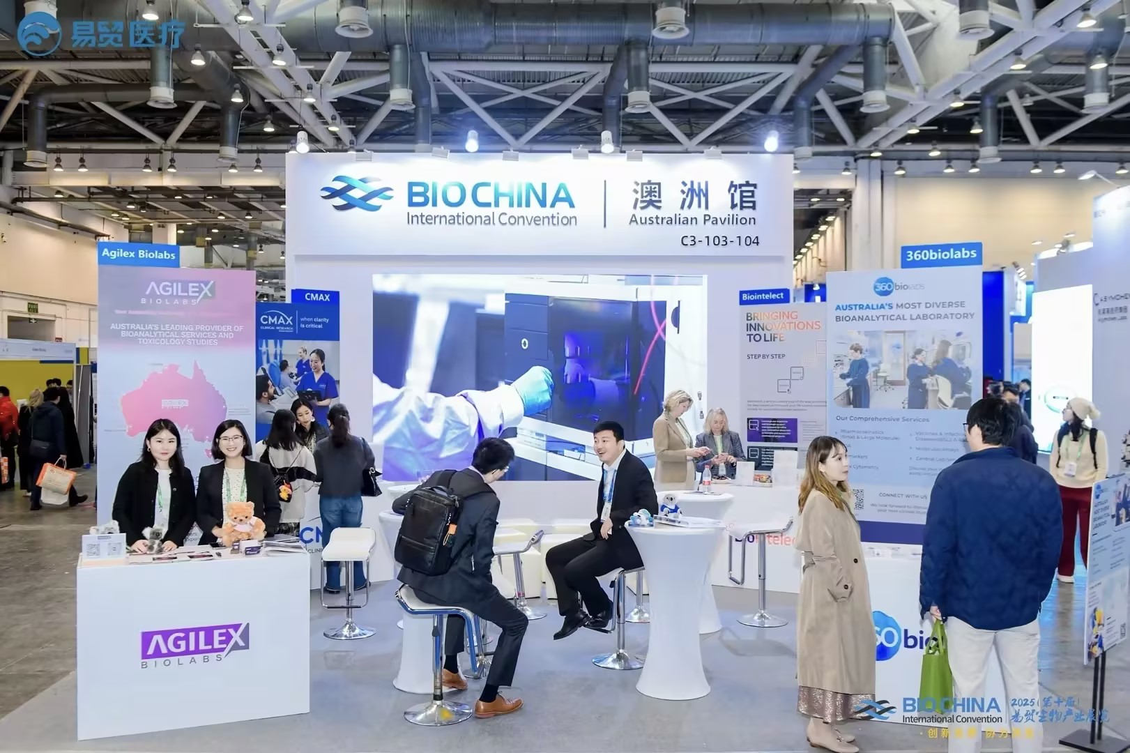 BIOCHINA2025,中澳交流闭门会专注于中澳两国生物医药行业的互惠合作,探讨创新药物研发、临床试验合作及两国监管政策的对接。Biointelect、CMAX、Agilex、360biolabs等企业现身澳洲馆,展示澳大利亚在临床试验及生物分析等方面的优势。