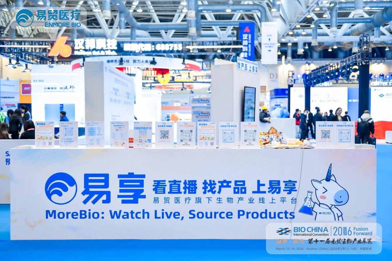 BIOCHINA2026(第十一届)易贸生物产业展览于2026年3月12-14日在苏州国际博览中心顺利举行!作为易贸医疗旗下的线上平台,易享此次不仅通过展台形式展现品牌实力,更现场全方位演示平台核心功能,展示了其强大的平台实力,为生物医药行业的从业者们提供了一个全新的交流与合作窗口。