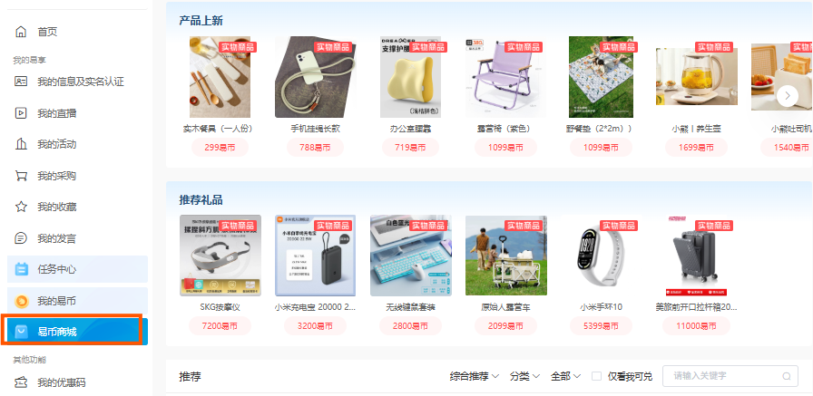 至【个人中心】-【易币商城】兑换礼品,累计的易币可以到易币商城,换取你喜欢的商品,免费邮寄到家,礼品不定时更新哦~