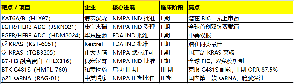 核心进展:复宏汉霖HLX97(口服小分子抑制剂)获 NMPA IND 批准,拟用于晚期 / 转移性实体瘤(含乳腺癌耐药)。