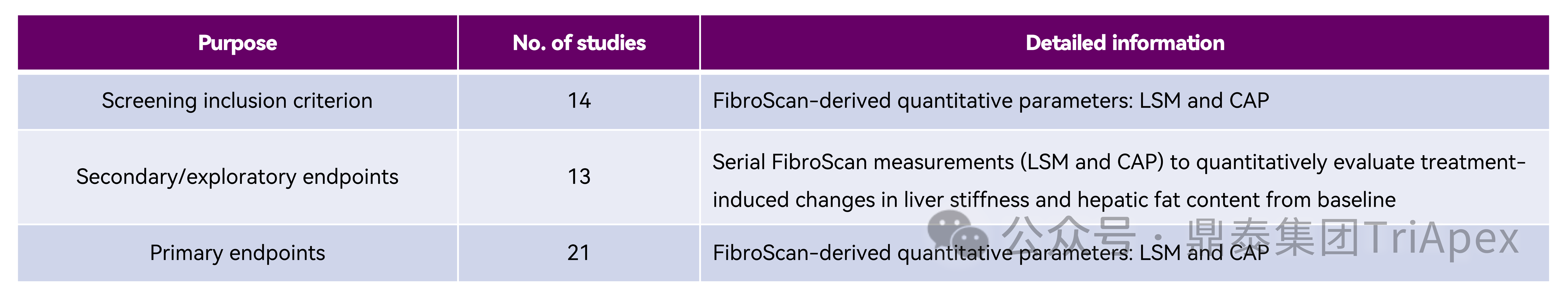 Figure 17 Clinical trials with VCTE measurements as primary endpoints[22]